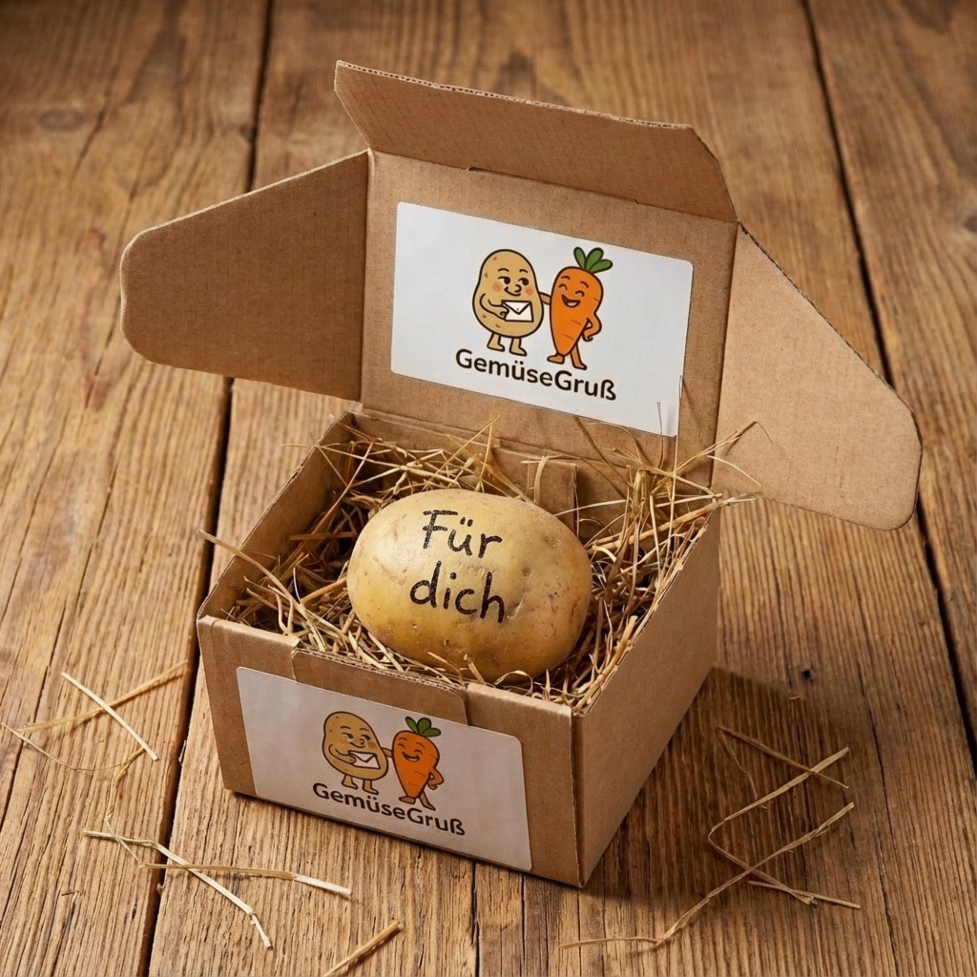 Der Kartoffel Gruß ist dein humorvoller Weg, persönliche Nachrichten auf einer echten Kartoffel zu verschicken. Egal, ob Geburtstag, Danke oder einfach nur so: Diese einzigartige Botschaft bleibt garantiert im Gedächtnis!